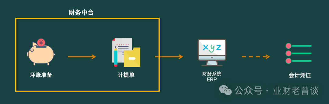 壞賬準(zhǔn)備計(jì)算完后,最終是要體現(xiàn)在ERP或財(cái)務(wù)系統(tǒng)的憑證分錄上,分錄的會(huì)計(jì)科目才是財(cái)務(wù)的靈魂。實(shí)現(xiàn)途徑有2種:- 一是計(jì)算完后生成《壞賬準(zhǔn)備計(jì)提單》,再同步到ERP的《壞賬準(zhǔn)備計(jì)提單》,由ERP生成憑證。
