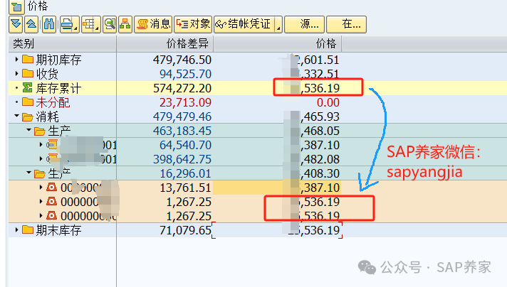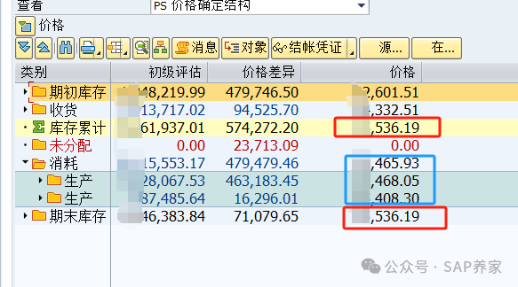 庫存累計價格 = 期末庫存價格,說明期末庫存分到的差異是正確的,