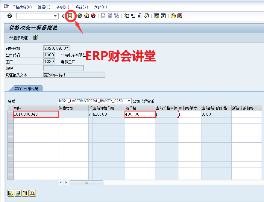 接下來(lái),MR21將物料價(jià)格更改為400.00,
