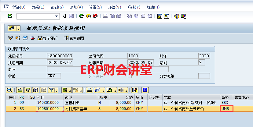 點(diǎn)擊“會(huì)計(jì)憑證”查看價(jià)格變更對(duì)應(yīng)的財(cái)務(wù)憑證如下,