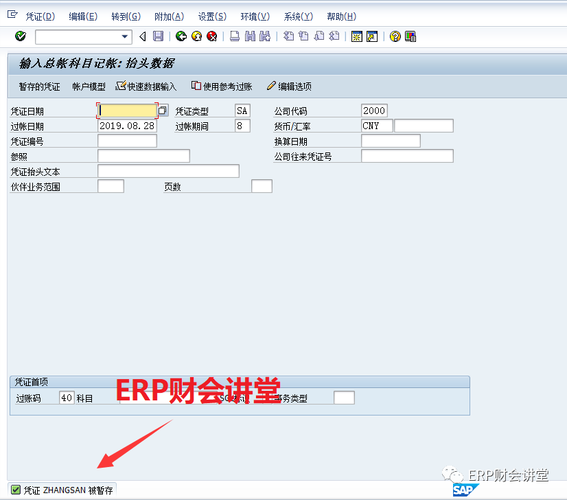 大家在SAP中錄入憑證時(shí),可能會(huì)遇見這種情況,憑證錄入到一半時(shí),領(lǐng)導(dǎo)臨時(shí)交代重要任務(wù),回來的時(shí)候SAP已經(jīng)斷掉了,不得不重新錄入憑證。有的朋友可能會(huì)問,SAP中是否可以臨時(shí)保存憑證呢?這當(dāng)然可以,今天要給大家介紹的就是SAP的憑證暫存功能。例如,張三來報(bào)銷費(fèi)用,剛錄完借方分錄,如下圖,