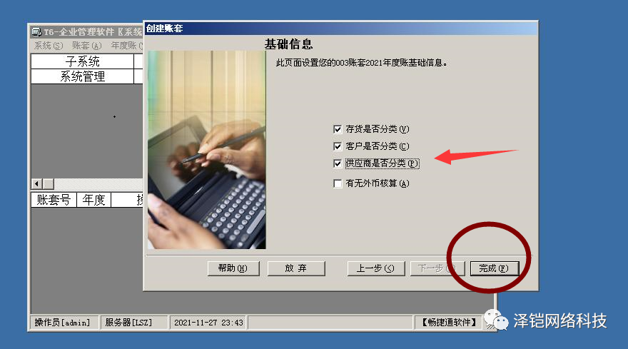 財(cái)務(wù)軟件是現(xiàn)代公司核算、管理和分析的必備工具,在新公司成立或公司剛使用財(cái)務(wù)軟件時(shí),都要涉及到一個(gè)問(wèn)題,就是新建帳套,這里就給大家分享下財(cái)務(wù)軟件新建帳套的流程,希望對(duì)大家有幫助。 ![]() 一、點(diǎn)擊桌面“系統(tǒng)管理”,點(diǎn)擊菜單“系統(tǒng)-注冊(cè)”,用操作員Admin用戶登錄,密碼為空,然后選擇【賬套】—【建立】,進(jìn)入建立新賬套的功能,顯示創(chuàng)建賬套輸入界面。 打開(kāi)系統(tǒng)管理,點(diǎn)擊系統(tǒng)--注冊(cè): ![]() ![]() ![]() ![]() 賬套號(hào):編號(hào)系統(tǒng)自動(dòng)生成,但可以修改,只能是001-999 之間的數(shù)字,而且不能是已存賬套中的賬套號(hào)。 賬套名稱(chēng):用來(lái)輸入新建賬套的名稱(chēng),作用是標(biāo)識(shí)新賬套的信息,用戶必須輸入。 賬套路徑:存儲(chǔ)新建賬套所要保存的路徑,系統(tǒng)已經(jīng)默認(rèn)的路徑,不用修改。 啟用會(huì)計(jì)期:輸入新建賬套要啟用的日期,必須輸入。 ![]() 三、填寫(xiě)公司名稱(chēng)、簡(jiǎn)稱(chēng)和其他內(nèi)容后點(diǎn)擊下一步: 用于記錄本單位的基本信息,包括單位名稱(chēng)、單位簡(jiǎn)稱(chēng)、單位地址、法人代表、郵政編碼、電話、傳真、電子郵件、稅號(hào)、備注。其中單位名稱(chēng)必輸,其他信息可輸可不輸。 ![]() 四、選擇企業(yè)執(zhí)行會(huì)計(jì)制度,點(diǎn)擊下一步: 用于記錄本單位的基本核算信息,包括本位幣代碼、本位幣名稱(chēng)、賬套主管、行業(yè)性質(zhì)、企業(yè)類(lèi)型、是否按行業(yè)預(yù)置科目等。 是否按行業(yè)預(yù)置科目:如果用戶希望采用系統(tǒng)預(yù)置所屬行業(yè)的標(biāo)準(zhǔn)一級(jí)科目,則在該選項(xiàng)前打勾,那么進(jìn)入下一步后,會(huì)計(jì)科目由系統(tǒng)自動(dòng)已經(jīng)設(shè)置;如果不選,則由用戶在進(jìn)入賬套后自己設(shè)置會(huì)計(jì)科目。 ![]() 五、勾選啟用核算,點(diǎn)擊完成: 存貨是否分類(lèi):如果單位的存貨較多,且類(lèi)別繁多,可以在存貨是否分類(lèi)選項(xiàng)前打勾,表明要對(duì)存貨進(jìn)行分類(lèi)管理;如果單位的存貨較少且類(lèi)別單一,也可以選擇不進(jìn)行存貨分類(lèi)。 供應(yīng)商是否分類(lèi):如果單位的供應(yīng)商較多,需要設(shè)置“應(yīng)付賬款”、“預(yù)付賬款”科目供應(yīng)商輔助核算,且希望進(jìn)行分類(lèi)管理,可以在供應(yīng)商是否分類(lèi)選項(xiàng)前打勾,表明要對(duì)供應(yīng)商進(jìn)行分類(lèi)管理;如果單位的供應(yīng)商較少,也可以選擇不進(jìn)行供應(yīng)商分類(lèi),只需設(shè)置“應(yīng)付賬款”、“預(yù)付賬款”二級(jí)科目明細(xì)核算即可。 是否有外幣核算:如果單位有外幣業(yè)務(wù),可以在此選項(xiàng)前打勾;否則可以不進(jìn)行設(shè)置。 點(diǎn)擊完成,系統(tǒng)提示“可以創(chuàng)建賬套了么?”,點(diǎn)擊“是”,開(kāi)始創(chuàng)建賬套。 ![]() ![]() ![]() ![]() 八、按提示點(diǎn)擊進(jìn)入啟用賬套: 系統(tǒng)提示賬套建立成功,點(diǎn)擊“是”可進(jìn)行系統(tǒng)啟用,也可點(diǎn)擊“否”,后續(xù)在T6企業(yè)門(mén)戶中進(jìn)行系統(tǒng)啟用。 ![]() 九、勾選所需啟用賬套后,點(diǎn)擊退出完成建賬操作: 如果點(diǎn)擊“是”,進(jìn)入系統(tǒng)啟用界面: ![]() ![]() ![]() ![]() 十、設(shè)置會(huì)計(jì)做賬的用戶及用戶權(quán)限: ![]() ![]() ![]() 十一、登錄軟件:點(diǎn)擊桌面“T6企業(yè)門(mén)戶”,用設(shè)置好的001用戶登錄賬套: ![]() ![]() 該文章在 2024/9/10 12:31:25 編輯過(guò) |
