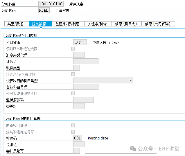 科目貨幣:如果維護(hù)和公司本位幣一致,在會計憑證中可以使用任意貨幣過賬;如果維護(hù)本位幣以外的科目,這只能使用維護(hù)的貨幣記賬; 僅限以本位幣記的余額:如果選擇該標(biāo)識,系統(tǒng)只顯示本位幣的余額,不顯示外幣余額; 稅務(wù)類型:控制財務(wù)憑證中稅碼字段允許輸入的稅碼 空:稅碼在行項目中不顯示 +:僅允許銷項稅,該科目只能和銷項稅稅碼一起過賬(可以輸入0稅率的銷項稅碼) -:僅允許進(jìn)項稅,該科目只能和進(jìn)項稅稅碼一起過賬(可以輸入0稅率的進(jìn)項稅碼) >:與 +邏輯相同,但是不能輸入0稅率的銷項稅碼 <:與 - 邏輯相同,但是不能輸入0稅率的進(jìn)項稅碼 特定稅碼:該科目只能使用指定的稅碼過賬 允許含/不含稅過賬:如果選中,則該科目過賬是可以不輸入稅碼,否則必須輸入稅碼; 統(tǒng)御科目的科目類型:用于連接子分類賬和總分類賬的橋梁,其實,就是供應(yīng)商主數(shù)據(jù)、客戶主數(shù)據(jù)、資產(chǎn)卡片對應(yīng)的會計科目;SAP生成應(yīng)收、應(yīng)付、固定資產(chǎn)憑證時,不是直接記在會計科目上的,是記在客戶編碼(應(yīng)收)、供應(yīng)商編碼(應(yīng)付)、資產(chǎn)卡片(資產(chǎn))上。通過客戶、供應(yīng)商、資產(chǎn)卡片等主數(shù)據(jù)中的統(tǒng)馭科目(就是會計科目),來實現(xiàn)子分類賬與總分類賬的連接;統(tǒng)御科目無法直接記賬; 備選科目號碼:a. 關(guān)聯(lián)國家科目表的科目;b. 作為附加信息,科目發(fā)生變更,可以在新課的此欄位備注舊科目號,方便查詢; 未清項管理:對于需要進(jìn)行清賬管理的科目,需要選中改標(biāo)識(GRIR,發(fā)出商品,銀行清算科目);統(tǒng)御科目默認(rèn)為未清項管理,不需要選中;對設(shè)有未清項管理功能的科目,系統(tǒng)會有一個是否結(jié)清狀態(tài),并以紅燈、綠燈標(biāo)記某一行項目是否結(jié)清;綠燈表示已結(jié)清,紅燈表示未結(jié)清;