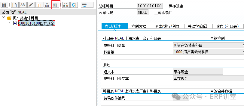 凍結(jié)建立:任何公司代碼都不能創(chuàng)建該科目的公司代碼級別數(shù)據(jù); 為記賬凍結(jié):任何公司都不能使用該科目過賬; 為計劃凍結(jié):任何公司都不能為該科目創(chuàng)建計劃數(shù)據(jù); 按公司代碼凍結(jié):在該公司代碼下不能使用該科目過賬; 如果一個科目需要凍結(jié),在凍結(jié)之前一定要查詢該科目余額是否為0.如果不為0,必須把該科目金額轉(zhuǎn)出,然后凍結(jié); 3.會計科目的刪除: 事務(wù)代碼:FS00,FSS0,FSP0