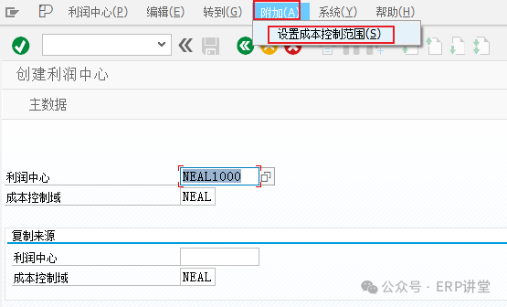 修改成本控制范圍,輸入利潤中心代碼,點擊回車: