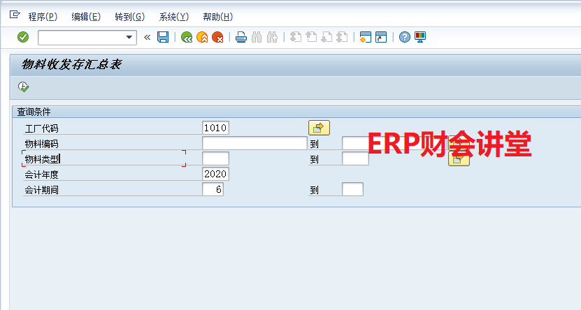 遺憾的是,SAP中也沒有這樣的報(bào)表,不過SAP很靈活,支持用戶進(jìn)行自定義的開發(fā)。按照CKM3N的邏輯將數(shù)據(jù)取出來,進(jìn)行匯總輸出,不就是收發(fā)存匯總表嗎? 根據(jù)如上邏輯,我們實(shí)現(xiàn)了收發(fā)存匯總表,初始界面如下。
