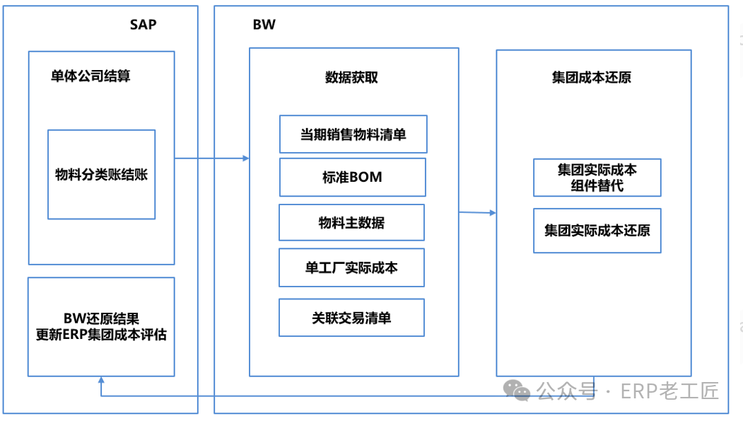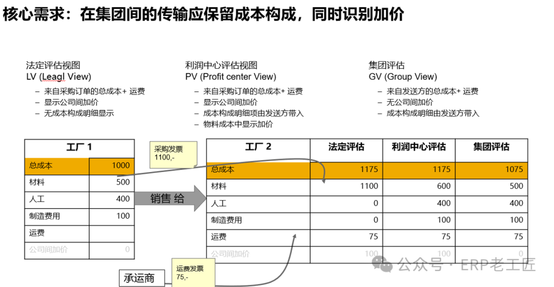 概述:什么是成本還原, 為什么SAP項(xiàng)目中成本還原成為難點(diǎn),成本還原在管理會(huì)計(jì)中的意義是什么? 成本還原(Cost Recovery),就是將產(chǎn)成品耗用各步驟半成品的綜合成本,逐步分解還原為原來(lái)的成本項(xiàng)目。成本還原的方法是從最后步驟開(kāi)始,將其耗用上步驟半成品的綜合成本逐步分解,還原為原來(lái)的成本項(xiàng)目。 1.在業(yè)財(cái)一體化條件下,結(jié)賬采用“綜合結(jié)轉(zhuǎn)”法,即上步驟的產(chǎn)品,是以綜合成本總數(shù)結(jié)轉(zhuǎn)到下步驟的,SAP的集成的實(shí)時(shí)過(guò)賬,更加加劇了這個(gè)特點(diǎn)。 2.SAP系統(tǒng)計(jì)算實(shí)際成本的邏輯:實(shí)際成本=標(biāo)準(zhǔn)成本+差異,實(shí)際成本由標(biāo)準(zhǔn)成本及多筆差異結(jié)轉(zhuǎn)而來(lái),因此要實(shí)現(xiàn)完成的成本還原,必然對(duì)業(yè)務(wù)端操作有限制與要求. 3.特別是在集團(tuán)型企業(yè),跨公司存在著法定“加價(jià)”,增加了成本還原的難度,基于法定維度LV(Legal View)的法定存貨評(píng)估與基于集團(tuán)維度GV(Group View)背離,及大部分企業(yè)的數(shù)據(jù)基礎(chǔ)薄弱,增加了實(shí)現(xiàn)成本還原落地的技術(shù)難度。 成本還原的管理價(jià)值:成本還原是基于集團(tuán)價(jià)值鏈管理角度的概念,因此,對(duì)于整個(gè)集團(tuán)的價(jià)值鏈分析,在預(yù)算管理,行業(yè)對(duì)標(biāo),內(nèi)控分析等具有重要意義: 1)編制預(yù)算:基于集團(tuán)層的預(yù)算,成本結(jié)構(gòu)是重要的基礎(chǔ),比如原材料預(yù)算,輔助料預(yù)算,人工預(yù)算,設(shè)備預(yù)算等,成本還原結(jié)構(gòu)是重要的參考數(shù)據(jù),也是搭建很多BI數(shù)據(jù)分析模型的基礎(chǔ)。 2)行業(yè)對(duì)標(biāo):與同行業(yè)對(duì)比,各種成本結(jié)構(gòu),各種資源消耗水平是否先進(jìn)。法人結(jié)構(gòu)可能由于稅率等原因,各個(gè)公司有不同的設(shè)置,但是從管理的角度,相同的行業(yè)往往需要進(jìn)行對(duì)標(biāo)分析,比如汽車,手機(jī),家電等。 3)全價(jià)值鏈分析,展開(kāi)供應(yīng)鏈合作,只有通過(guò)成本結(jié)構(gòu)分析,發(fā)現(xiàn)價(jià)值有效還是無(wú)效,對(duì)供應(yīng)鏈進(jìn)行整合,比如,對(duì)某些成本高的工序進(jìn)行外包決策等; 4)進(jìn)行區(qū)域,行業(yè)等維度的戰(zhàn)略分析:解析成本結(jié)構(gòu),區(qū)分交易加價(jià),將集團(tuán),產(chǎn)品線,法定三個(gè)維度區(qū)分,區(qū)分各個(gè)產(chǎn)品,區(qū)域的獲利能力。 方案總覽:在SAP實(shí)施項(xiàng)目中,成本還原方案,按是否跨公司,基于實(shí)時(shí)交易(OLTP)或基于數(shù)據(jù)分析(OLAP),老工匠總結(jié)了3種解決方案:
