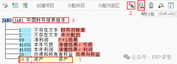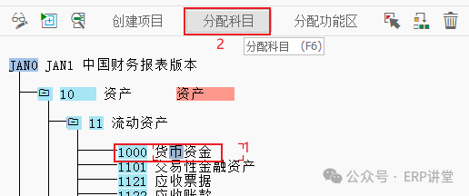 2.2 給每一個(gè)表項(xiàng)分配科目 選擇需要分配科目的行,點(diǎn)擊“分配科目”: