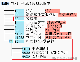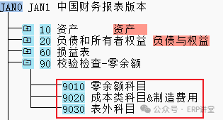 60:損益表(新建損益表表項(xiàng)) 90:校驗(yàn)檢查;檢查表外科目和零余額科目月末的匯總余額是否為0; 零余額科目:固定資產(chǎn)清理,待處理財(cái)產(chǎn)損益; 成本類&制造費(fèi)用:月末生產(chǎn)成本與制造費(fèi)用的匯總余額必須是0; 表外科目:次級(jí)成本要素,GRIR,起初導(dǎo)入科目等;