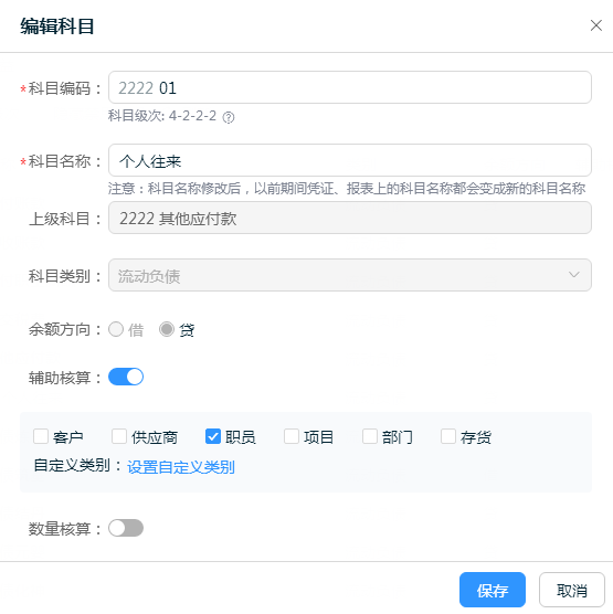 為了滿足核算和報表需求,一般應收賬款、預收賬款、應付賬款、預付賬款、其他應收款、其他應付款、庫存商品等科目會設(shè)置對應的輔助核算,其他科目根據(jù)需求也可以進行設(shè)置,例如工程施工類科目設(shè)置項目核算等。