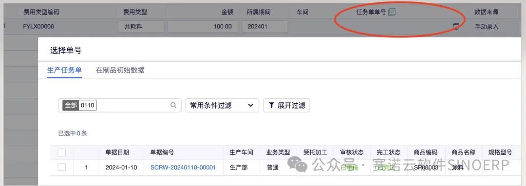 費(fèi)用歸集中也可以手工錄入費(fèi)用(或者導(dǎo)入EXCEL),如果存在某項(xiàng)費(fèi)用并不是分配在所有的生產(chǎn)任務(wù)單上,而是需要指定分配在某些生產(chǎn)任務(wù)單上時(shí),就需要通過指定生產(chǎn)任務(wù)單,比如上面我們所提到的共耗材料如果只分?jǐn)偟街付ǖ娜蝿?wù)單產(chǎn)品上