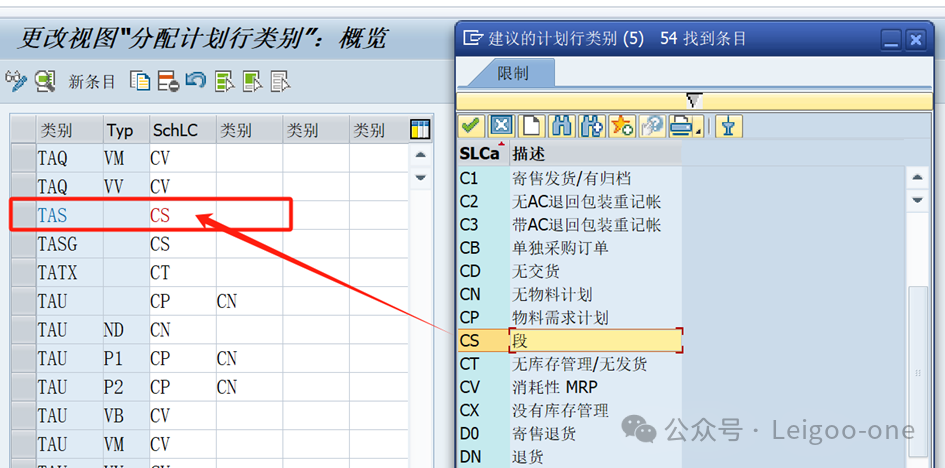 這一步不能漏。銷售訂單里面的行項目為什么會自動帶出TAS,是因為物料主數(shù)據(jù)中銷售視圖2的項目類別組維護為BANS,系統(tǒng)通過BANS帶出TAS,這是配置決定的。在前臺銷售訂單,根據(jù)“銷售組織+分銷渠道+產(chǎn)品組”可以匹配相應(yīng)的訂單類型;“訂單類型+項目類別組(物料主數(shù)據(jù)銷售字段)”,又可以匹配到相應(yīng)的項目類別。 4、分配計劃行類別VOV5 路徑:SPRO-銷售與分銷-銷售-銷售憑證-計劃行-分配計劃行類別 上面已知道銷售訂單行項目類別為TAS,銷售訂單通過TAS帶出計劃行類別CS/CB,所以要將計劃行類別CS/CB先分配給TAS。