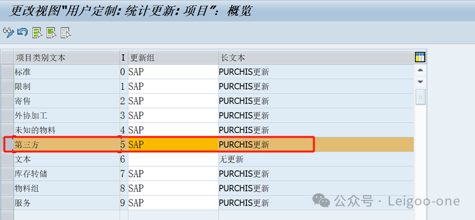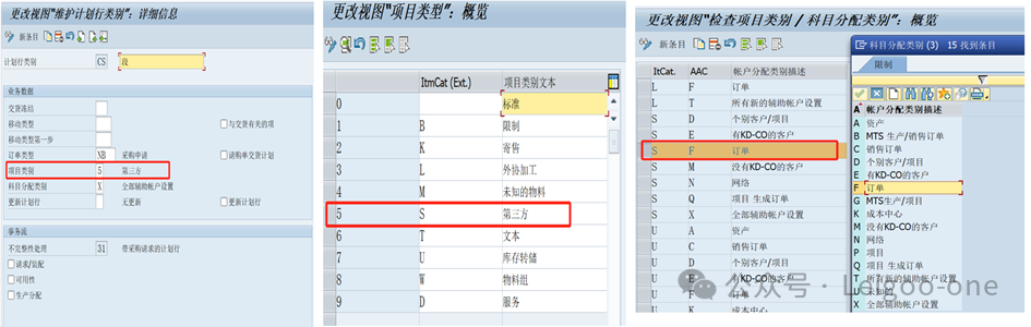 7、項目類別和賬戶分配類別組合OMG0 項目類別和賬戶分配類別的組合作用?在于確保在采購和財務(wù)管理過程中,能夠準(zhǔn)確地追蹤和管理成本和費用。 采購中的項目類別指憑證的采購方式,如標(biāo)準(zhǔn)、寄售、第三方、轉(zhuǎn)儲等,此項配置不允許新增條目,只可修改外部表示和描述。科目分配類別則是指定記賬方式,除標(biāo)準(zhǔn)采購?fù)?,像服?wù)、訂單、資產(chǎn)等類型的采購都有指定的條目,并且可以新增條目。項目類別與科目分配類別有關(guān)聯(lián)配置,只有在關(guān)聯(lián)配置中有組合,才可在采購憑證中運用。這里的意思也就是,第三方銷售的采購環(huán)節(jié)配置了“采購項目類別+賬戶分配類別”才能過順利記賬。如下圖,意思就是:“采購方式5-S-第三方采購”,記賬到“F-訂單”這個科目分配類別。