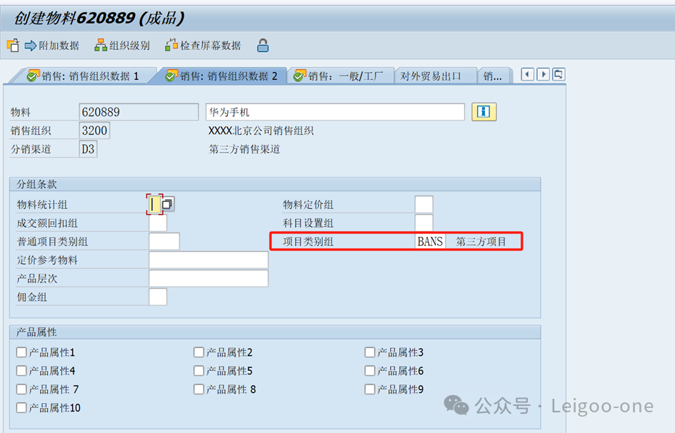 科目(賬戶)分配類別的作用主要有: 確定成本歸屬:科目分配類別用于明確采購成本或相關(guān)費用在財務(wù)核算中的歸屬。比如,常見的科目分配類別 “K” 代表成本中心,意味著采購產(chǎn)生的成本將歸集到特定的成本中心,以便準(zhǔn)確核算各部門或項目的費用支出. 關(guān)聯(lián)總賬科目:它與總賬科目存在對應(yīng)關(guān)系,通過科目分配類別及相關(guān)配置,可以確定采購業(yè)務(wù)對應(yīng)的總賬科目,從而實現(xiàn)采購成本、費用等在財務(wù)報表中的準(zhǔn)確記錄和反映。例如,在自動過賬配置OBYC中,根據(jù)科目分配類別、估價修改、一般修改和評估級別等的組合,可以唯一確定總賬科目. 指導(dǎo)采購流程:科目分配類別在采購流程中起著指導(dǎo)作用。它決定了在采購訂單創(chuàng)建、收貨及發(fā)票校驗等環(huán)節(jié)中,系統(tǒng)如何進行會計核算和成本分配。不同的科目分配類別會導(dǎo)致采購業(yè)務(wù)在財務(wù)處理上的差異,進而影響整個業(yè)務(wù)流程的財務(wù)結(jié)果. 控制數(shù)據(jù)輸入:在采購訂單行項目中,科目分配類別還決定了哪些數(shù)據(jù)是必輸項。例如,當(dāng)科目分配類別為 “K” 時,用戶必須輸入相應(yīng)的成本中心和損益類科目,以確保成本能夠準(zhǔn)確地分配到指定的對象上. 支持業(yè)務(wù)分析:通過科目分配類別,企業(yè)可以更好地進行業(yè)務(wù)分析和成本控制。例如,可以按不同的科目分配類別對采購數(shù)據(jù)進行分類匯總和分析,了解各成本中心或項目的采購支出情況,為成本管理和決策提供有力支持。 (三)第三方銷售實例 1、銷售物料維護MM01/MM02/MM03 新建一個物料,項目類別組選擇BANS第三方項目。如圖,生成一個物料編號620889,華為手機;銷售組織數(shù)據(jù)2界面“項目類別組”選擇BANS第三方銷售。