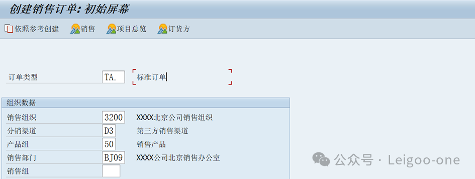 4、創(chuàng)建銷售訂單VA01 輸入訂單類型以及銷售組織信息,
