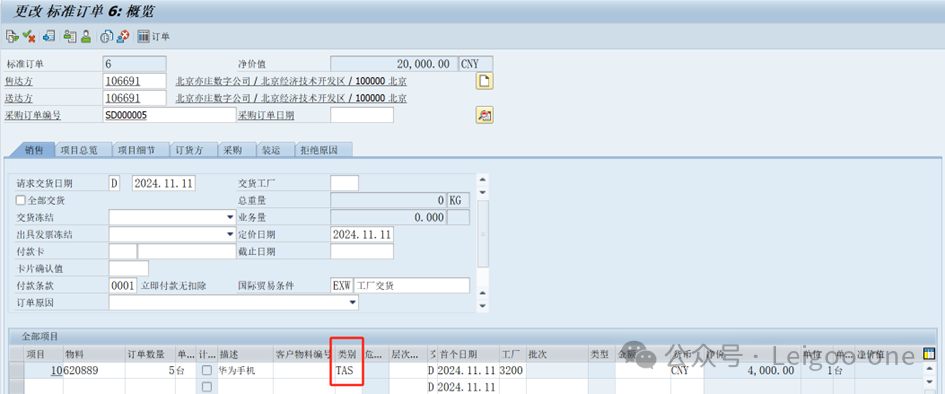 輸入采購訂單編號,客戶、物料、訂單數(shù)量、類別(TAS自動帶入)金額。
