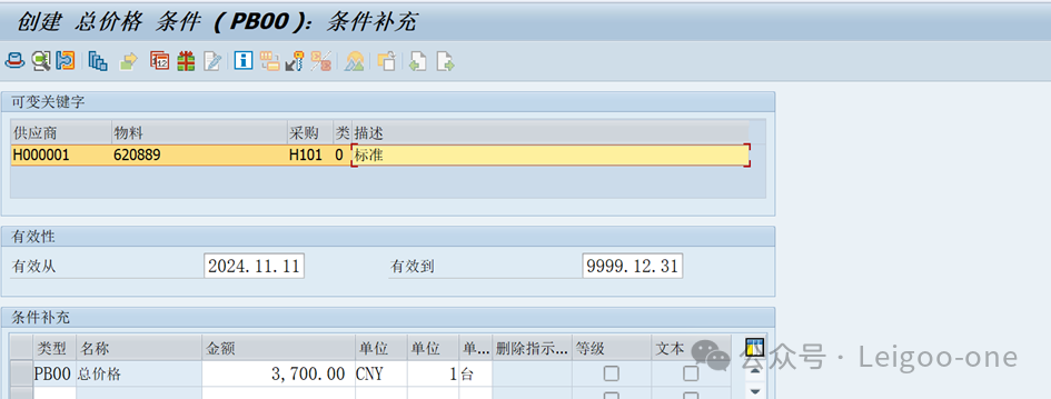 6、維護供應(yīng)商-物料-采購組織間的采購信息記錄ME11