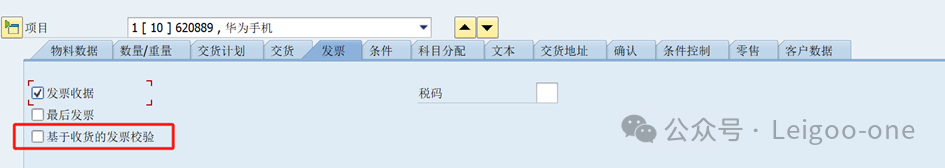 補充完成采購組織、供應(yīng)商等信息。如果不需要實際收貨,把“基于收貨的發(fā)票校驗"去掉。需要注意,如果沒有取消掉就需要有收貨操作才能發(fā)票校驗,否則發(fā)票校驗帶不出數(shù)據(jù)。