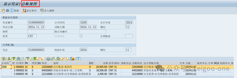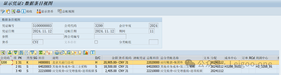 在SAP的配置中,開票憑證復(fù)制控制中的出具發(fā)票數(shù)量有 “F” 和 “E” 兩個選項,其含義如下 : 選擇 “F”:表示發(fā)票中的數(shù)量參照采購訂單發(fā)票校驗的數(shù)量。在不收貨的第三方銷售場景中,由于沒有實際的收貨環(huán)節(jié),無法以收貨數(shù)量作為開票依據(jù),而采購訂單發(fā)票校驗的數(shù)量是供應(yīng)商提供發(fā)票上的數(shù)量,相對更能反映實際交易的數(shù)量,因此選擇 “F” 更為合適。 選擇 “E”:表示發(fā)票中的數(shù)量參照采購訂單收貨的數(shù)量 。但在不收貨的業(yè)務(wù)場景下,該選項不符合業(yè)務(wù)實際,因為沒有收貨操作,也就不存在收貨數(shù)量。 整個業(yè)務(wù)生成的會計憑證如下: