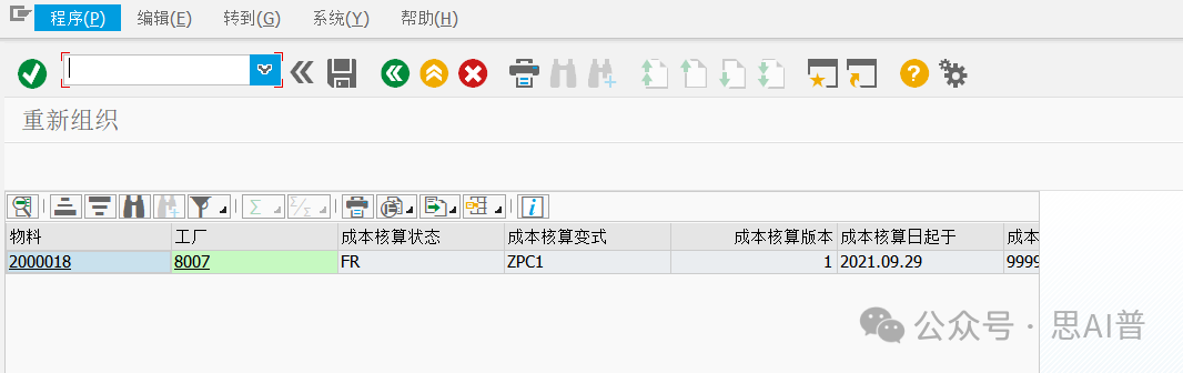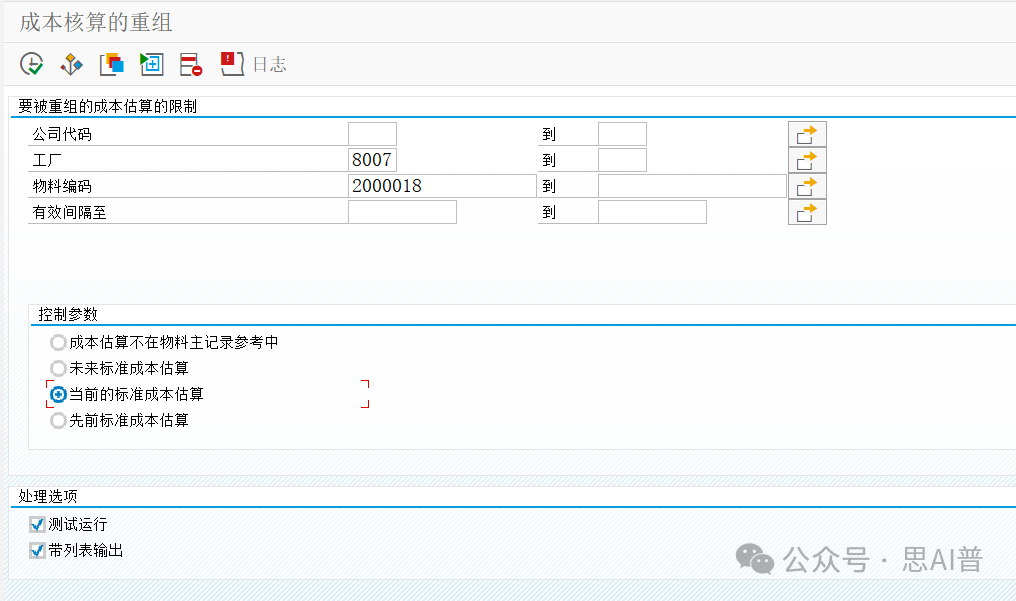 去掉測試執(zhí)行會有黃色提示:刪除當前的標準成本估算會導致不一致消息號 CK669 診斷·如果刪除了當前的標準成本估算,那么成本估算的字段在物料主數(shù)據(jù)記錄里 ·設(shè)置為零。如果使用物料分類帳,那么當刪除當前標準成本估算的時候,物料分類帳主數(shù)據(jù)里的標準價格也會刪除。物料的物料主數(shù)據(jù)記錄因而不再包含來自標準成本估算的當前標準價格。 ·如果刪除了激活的標準成本估算,那么可以不再確定廢品,工作過程和前一期間的変式。 ·在某些國家,維護標準定價記錄是法定需求。所以,應(yīng)該檢查是否有義務(wù)按照法律保持標準成本估算的記錄。也請聯(lián)系相應(yīng)的會計核算以及庫存管理部門。 充分提示了影響,我們繼續(xù)刪除(敲回車即過)