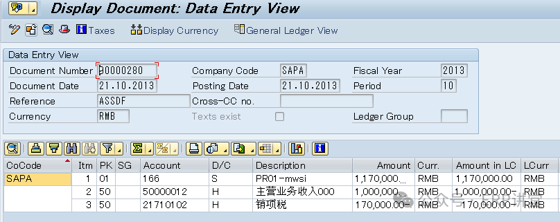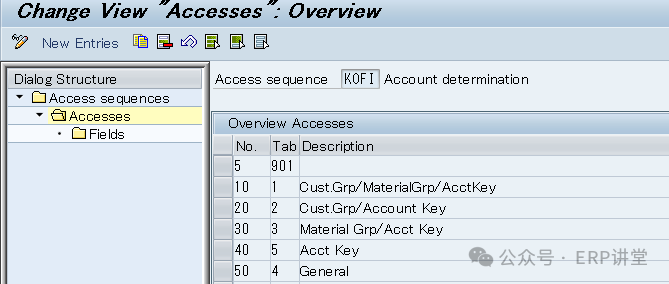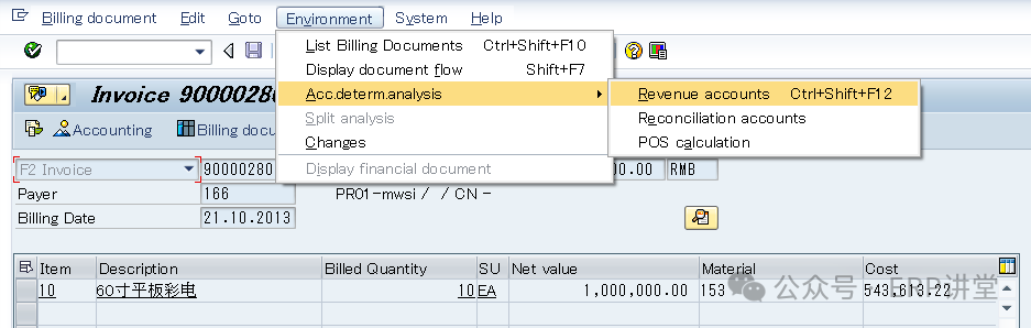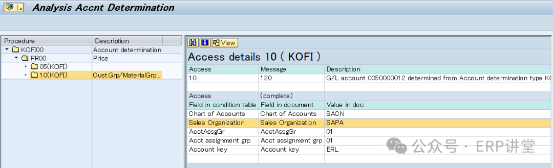 分析結(jié)果:通過科目確定procedure KOFI00的access10 KOFI 的KEY組合 COA :SACN 銷售組織:SAPA ,客戶的科目確定組:01,物料的科目確定組:01,科目碼:ERL 來確定出科目50000012