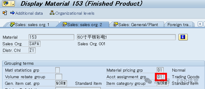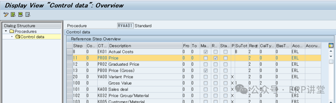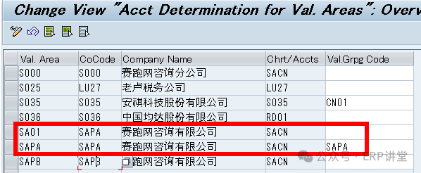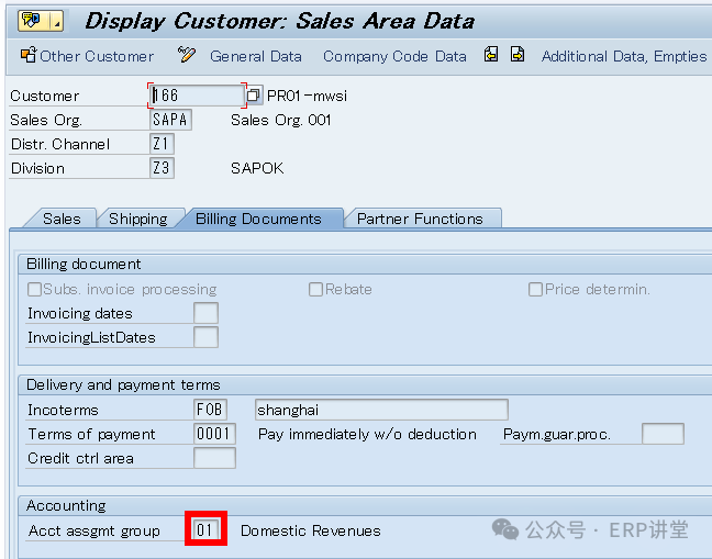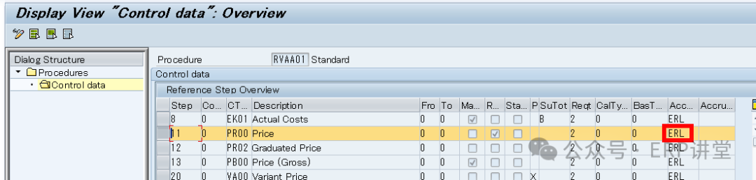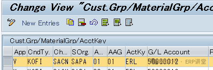 先找10,價格PR00的科目碼是ERL,客戶科目組01,物料科目組01,找到科目50000012。 這種方案是按客戶/物料來分收入科目 客戶分為海外/國內(nèi),物料分為大宗商品/易耗品 這樣收入科目就分為 海外大宗商品銷售收入/海外易耗品銷售收入/國內(nèi)大宗商品銷售收入/國內(nèi)易耗品銷售收入