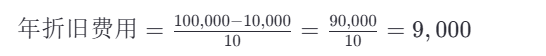 公式解釋 1. 資產(chǎn)原值:固定資產(chǎn)的初始購買價格或賬面價值。 2. 殘值:固定資產(chǎn)在使用壽命結(jié)束時的估計殘余價值。 3. 預(yù)計使用壽命:固定資產(chǎn)預(yù)計可以使用的年限。 示例計算 假設(shè)某公司購買了一臺機器,其資產(chǎn)原值為100,000元,預(yù)計使用壽命為10年,殘值為10,000元。那么,每年的折舊費用計算如下: