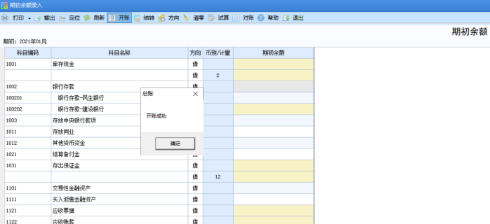 新年度登陸打開期初余額-點擊開賬即可沿用上年會計科目(會計科目與上年保持一致)