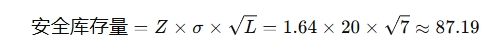 Z值(Z-Score):反映了在某一置信水平下,需求波動(dòng)的標(biāo)準(zhǔn)偏差。常見的Z值有: 90%服務(wù)水平:Z=1.28 95%服務(wù)水平:Z=1.64 99%服務(wù)水平:Z=2.33 σ(標(biāo)準(zhǔn)差):需求量的標(biāo)準(zhǔn)差,衡量需求波動(dòng)性。 L:采購(gòu)周期(Lead Time),即從下單到收到商品的時(shí)間。 計(jì)算步驟: 計(jì)算需求的標(biāo)準(zhǔn)差:根據(jù)歷史數(shù)據(jù)或需求預(yù)測(cè),計(jì)算出需求量的標(biāo)準(zhǔn)差。 確定Z值:根據(jù)企業(yè)設(shè)定的顧客服務(wù)水平,選擇合適的Z值。例如,如果企業(yè)承諾95%的服務(wù)水平,那么選擇Z=1.64。 確定采購(gòu)周期:即從訂單下達(dá)到交貨的時(shí)間間隔。 計(jì)算安全庫(kù)存量:根據(jù)上述公式,計(jì)算出應(yīng)保持的安全庫(kù)存量。 該方法的優(yōu)點(diǎn)在于能夠基于實(shí)際的需求波動(dòng)和服務(wù)水平要求,合理地設(shè)置安全庫(kù)存,從而在需求變化時(shí),保障供應(yīng)的連續(xù)性和顧客的滿意度。 2)基于歷史數(shù)據(jù)和預(yù)測(cè)的計(jì)算方法 除了基于需求波動(dòng)的計(jì)算方法,企業(yè)還可以通過歷史銷售數(shù)據(jù)、供應(yīng)延遲以及需求預(yù)測(cè)來計(jì)算安全庫(kù)存。這種方法的核心是通過統(tǒng)計(jì)分析歷史數(shù)據(jù),估算出未來一段時(shí)間內(nèi)的需求量和供應(yīng)周期,然后根據(jù)這些數(shù)據(jù)設(shè)置安全庫(kù)存。 基本計(jì)算公式: 安全庫(kù)存量=(最大需求量×供應(yīng)延遲時(shí)間)?(平均需求量×供應(yīng)延遲時(shí)間) 計(jì)算步驟: 確定最大需求量和平均需求量:通過歷史銷售數(shù)據(jù),確定最大需求量和平均需求量。 評(píng)估供應(yīng)延遲時(shí)間:分析供應(yīng)商的交貨周期和過去的供應(yīng)延遲記錄,估算供應(yīng)鏈可能出現(xiàn)的延遲時(shí)間。 計(jì)算安全庫(kù)存量:通過計(jì)算最大需求量與平均需求量的差異,并乘以供應(yīng)延遲時(shí)間,得出安全庫(kù)存量。 這種方法特別適用于那些需求波動(dòng)較大、供應(yīng)鏈不穩(wěn)定的產(chǎn)品,它能夠根據(jù)歷史數(shù)據(jù)和供應(yīng)鏈情況,幫助企業(yè)預(yù)測(cè)未來可能發(fā)生的需求和供應(yīng)波動(dòng),從而提前設(shè)定足夠的安全庫(kù)存量。 實(shí)例說明: 假設(shè)某企業(yè)銷售一種季節(jié)性產(chǎn)品,以下是有關(guān)該產(chǎn)品的相關(guān)數(shù)據(jù): 日平均需求量:100件 日最大需求量:150件 采購(gòu)周期:7天 服務(wù)水平:95%(Z=1.64) 需求標(biāo)準(zhǔn)差:20件 安全庫(kù)存計(jì)算: 計(jì)算需求波動(dòng)量: