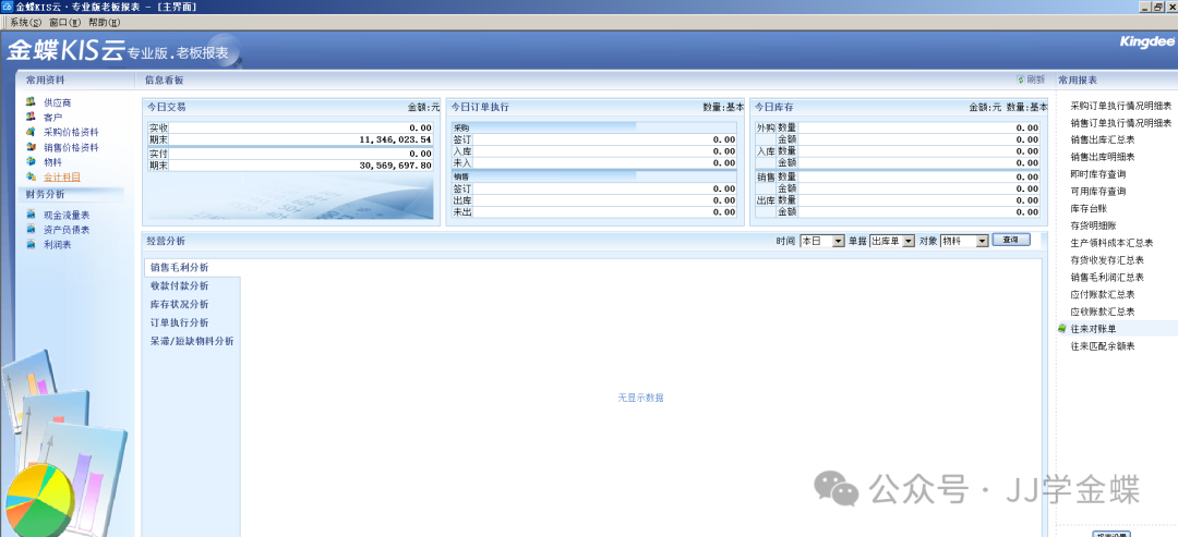 3. 經(jīng)營(yíng)分析:包含毛利分析、收付款分析、庫(kù)存分析、訂單執(zhí)行分析、物料分析。