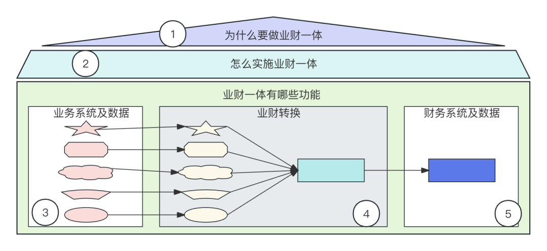 我提煉出的這三點可以高度概括業(yè)財一體化,打開業(yè)財一體的大門業(yè)務是非標準化,不同的領域、不同的公司、不同的部門、不同的系統(tǒng)都各不相同財務是標準化,有嚴格的會計準則和法律法規(guī),這也是為什么有全球通用及國內主流的會計軟件的原因大部分企業(yè)的業(yè)務是業(yè)務,財務是財務,業(yè)務按照財務要求提供數據報表完成記賬而業(yè)財一體,讓業(yè)務和財務在數據層打通了,怎樣將非標的業(yè)務與標準的財務連接起來呢?這就是業(yè)財一體的鏈接模型,從各種形狀的口轉換成財務的方口從圓口到方口是從信息化系統(tǒng)層面對業(yè)財作用的抽象而要完整的把握業(yè)財一體,或者說是去接手一個業(yè)財一體的項目,還應該再增加2點認識,構成5點模型不同行業(yè),不同公司,不同部門和人員目的不同,要想做好業(yè)財一體順利推進,那要了解各個角色的需求是什么