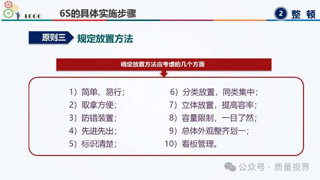 定義:將工作場所的物品區(qū)分為必要和不必要的,清除不必要的物品。全面檢查:對工作場所的所有區(qū)域,包括設備、工具、物料、文件等進行全面檢查。使用頻率判斷:根據物品的使用頻率來決定是否保留,如一年內使用不到一次的物品可考慮清理。建立清理標準:明確什么是必要物品,什么是不必要物品,制定具體的判斷標準。整頓(Seiton)
