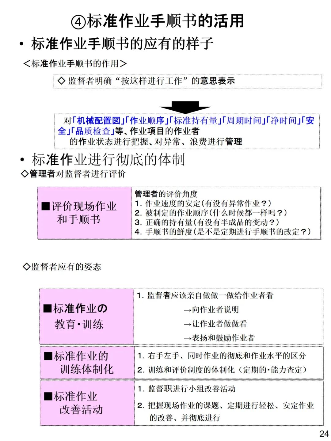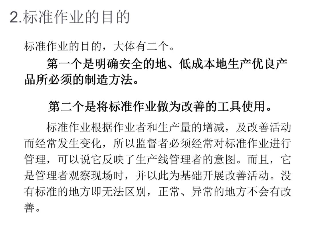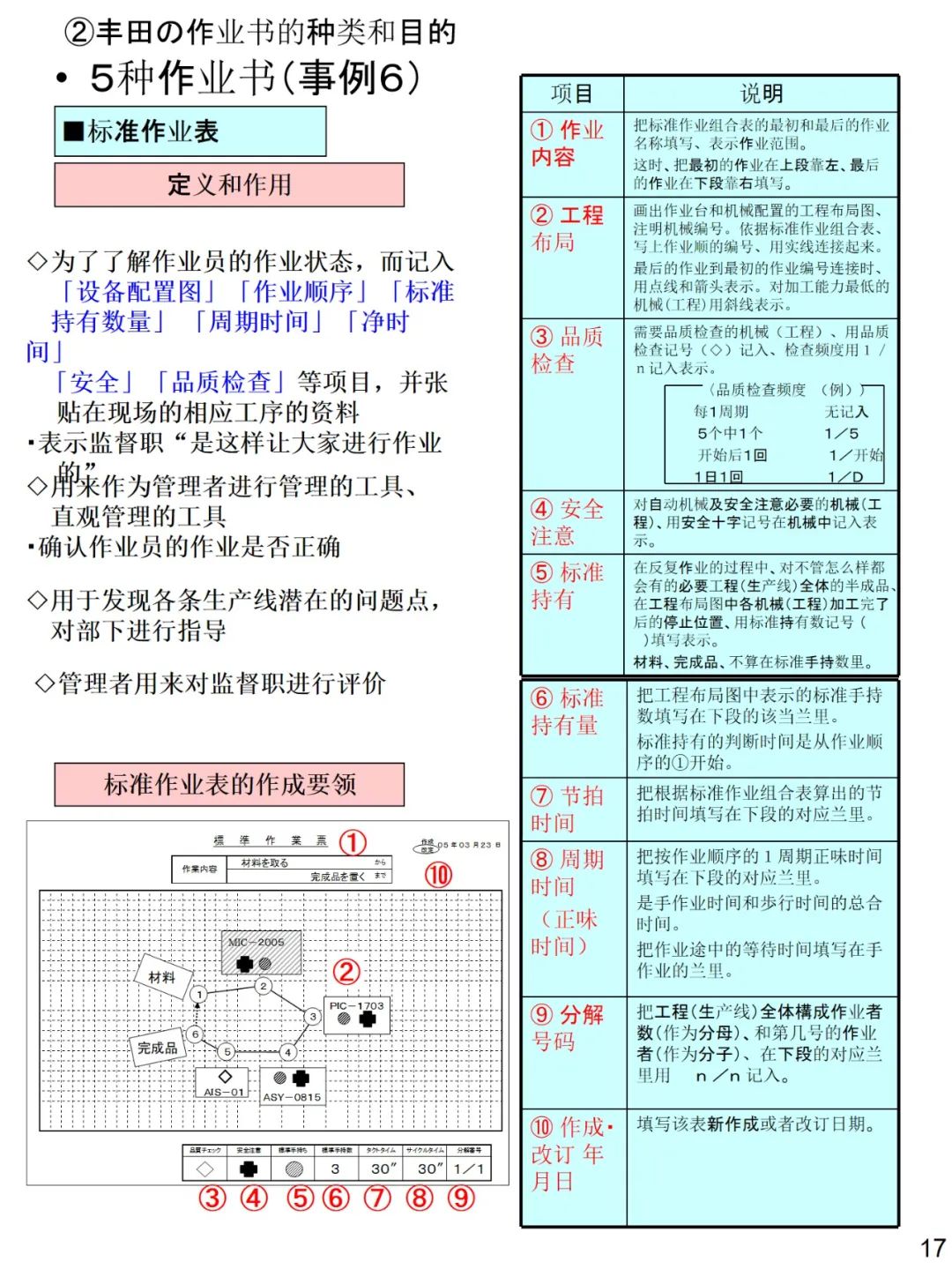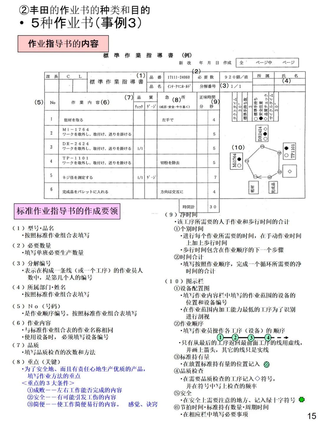| ?內(nèi)容形式? | 包含節(jié)拍時(shí)間、庫(kù)存標(biāo)準(zhǔn)等管理要素? | 強(qiáng)調(diào)步驟、工具、安全等實(shí)操細(xì)節(jié)? |