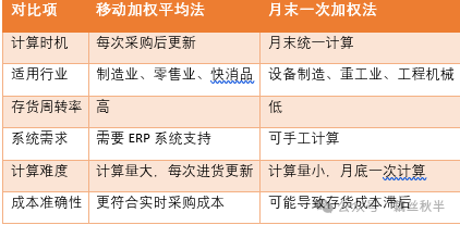 三、對(duì)比分析 ??對(duì)比分析:移動(dòng)加權(quán)vs月末一次加權(quán) ![]() ?如何選擇?