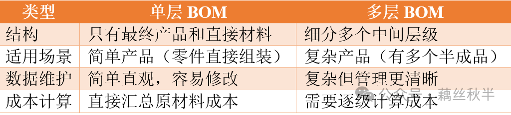 ![]() ??BOM(物料清單)是制造業(yè)的“配方表”,搞不清楚?那成本計(jì)算、生產(chǎn)計(jì)劃全亂套! 一、什么是BOM BOM(Bill of Materials),物料清單,是產(chǎn)品制造的“食譜”。 BOM最核心的層級(jí)結(jié)構(gòu),決定了它是單層BOM還是多層BOM?? ![]() 二、單層BOM,適合哪些場(chǎng)景? ??適用于簡(jiǎn)單產(chǎn)品