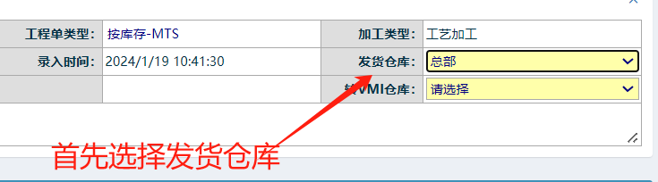 首先選擇發(fā)料倉庫, 如下圖: