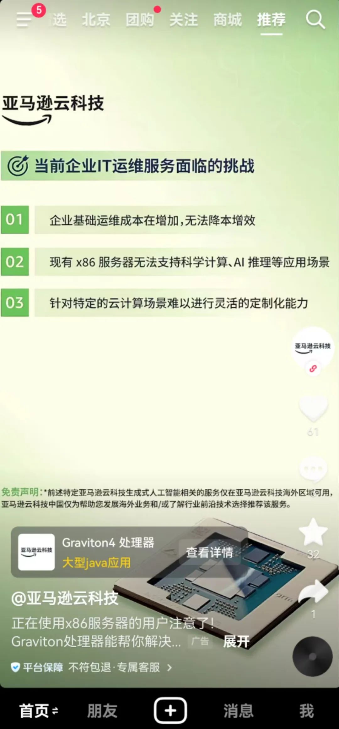 • 短視頻等信息流廣告:國內是基于抖音/微信生態(tài)(朋友圈、視頻號、公眾號),小紅書等也可以投放,廣告主向選定的客戶群體展示圖文或者短視頻等廣告??蛻酎c擊廣告后進入企業(yè)官網(wǎng)或廣告頁互動,現(xiàn)在抖音投放也可以直接引流到客服咨詢;
