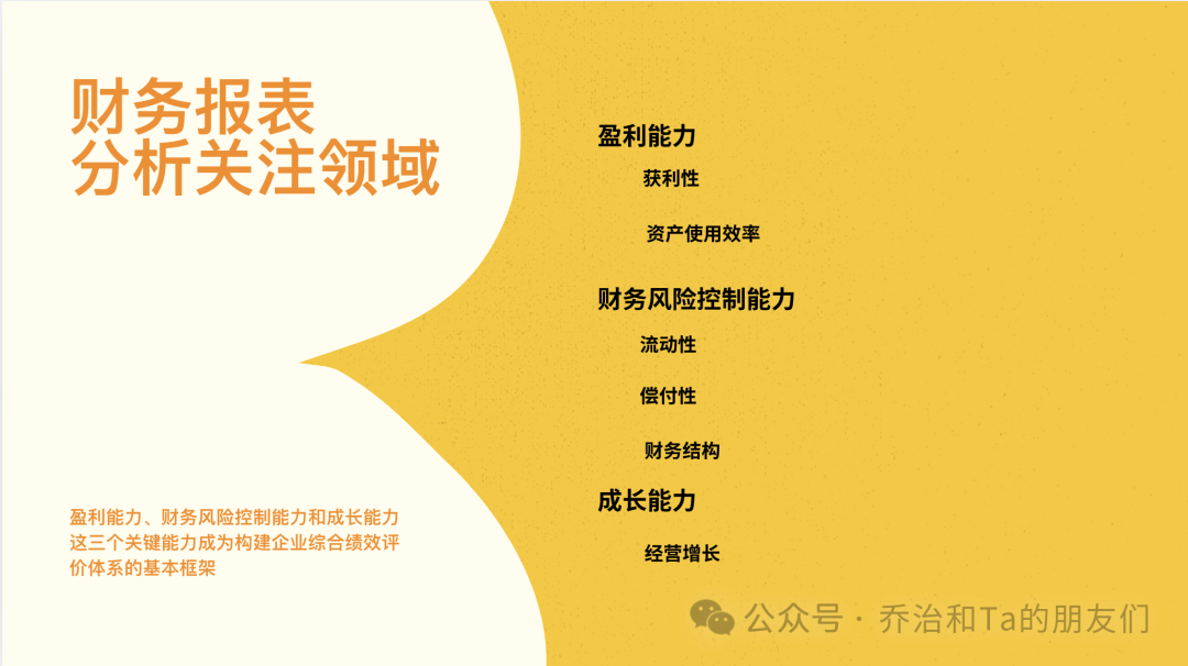 04 企業(yè)綜合績效的財(cái)務(wù)分析基本框架從很多財(cái)務(wù)報(bào)表分析的理論文獻(xiàn)與企業(yè)實(shí)踐中都可以看出,幾乎所有財(cái)務(wù)報(bào)表分析的關(guān)注領(lǐng)域都集中在如下六大方面。- 獲利性:在同等業(yè)務(wù)量和營業(yè)收入水平下,降低成本以產(chǎn)生更多利潤的能力,亦即如何最大化利潤表的最終行項(xiàng)(bottom line)“凈利潤”。