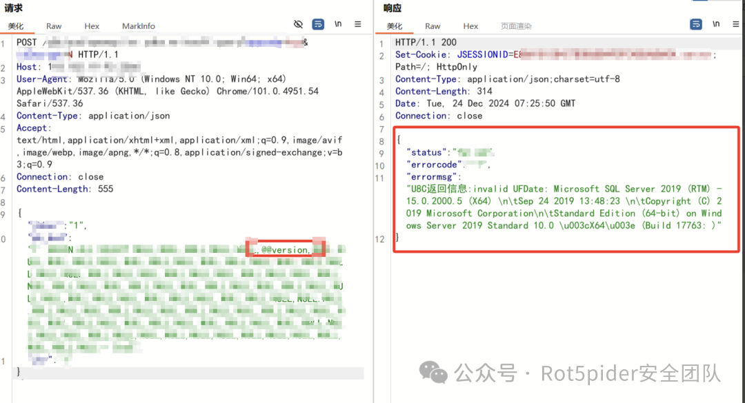引 言 此漏洞未公開未公開漏洞 xxx云平臺(tái)存在未授權(quán)SQL注入漏洞,攻擊者可通過構(gòu)造惡意JSON請(qǐng)求實(shí)現(xiàn)數(shù)據(jù)庫版本信息泄露,進(jìn)而可能獲取服務(wù)器控制權(quán)限。 上述json參數(shù)添加完即可進(jìn)入if判斷 閱讀原文:https://mp.weixin.qq.com/s/4VTQDvxuW5hqFZ_j3zhxCA 點(diǎn)晴模切ERP更多信息:http://moqie.clicksun.cn,聯(lián)系電話:4001861886 該文章在 2025/4/18 11:37:50 編輯過 |