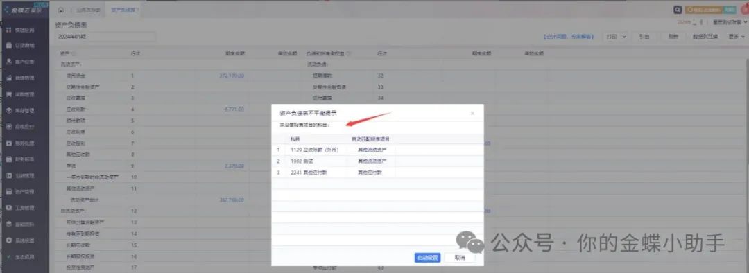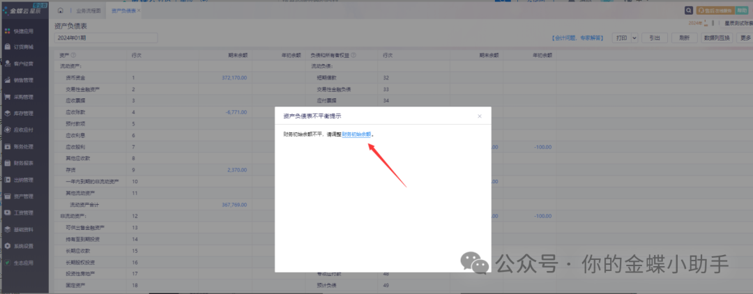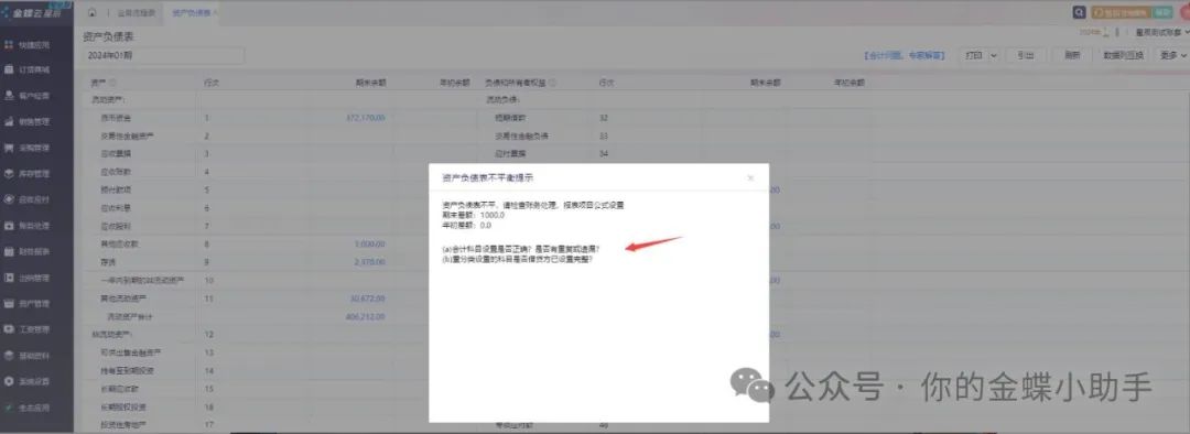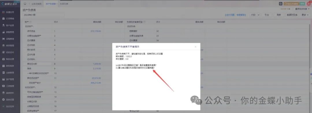 [點(diǎn)晴模切ERP]金蝶云星辰財(cái)務(wù)系統(tǒng)打開資產(chǎn)負(fù)債表,提示不平衡的常見情況
