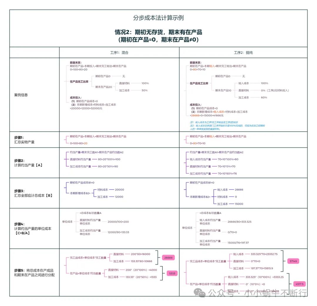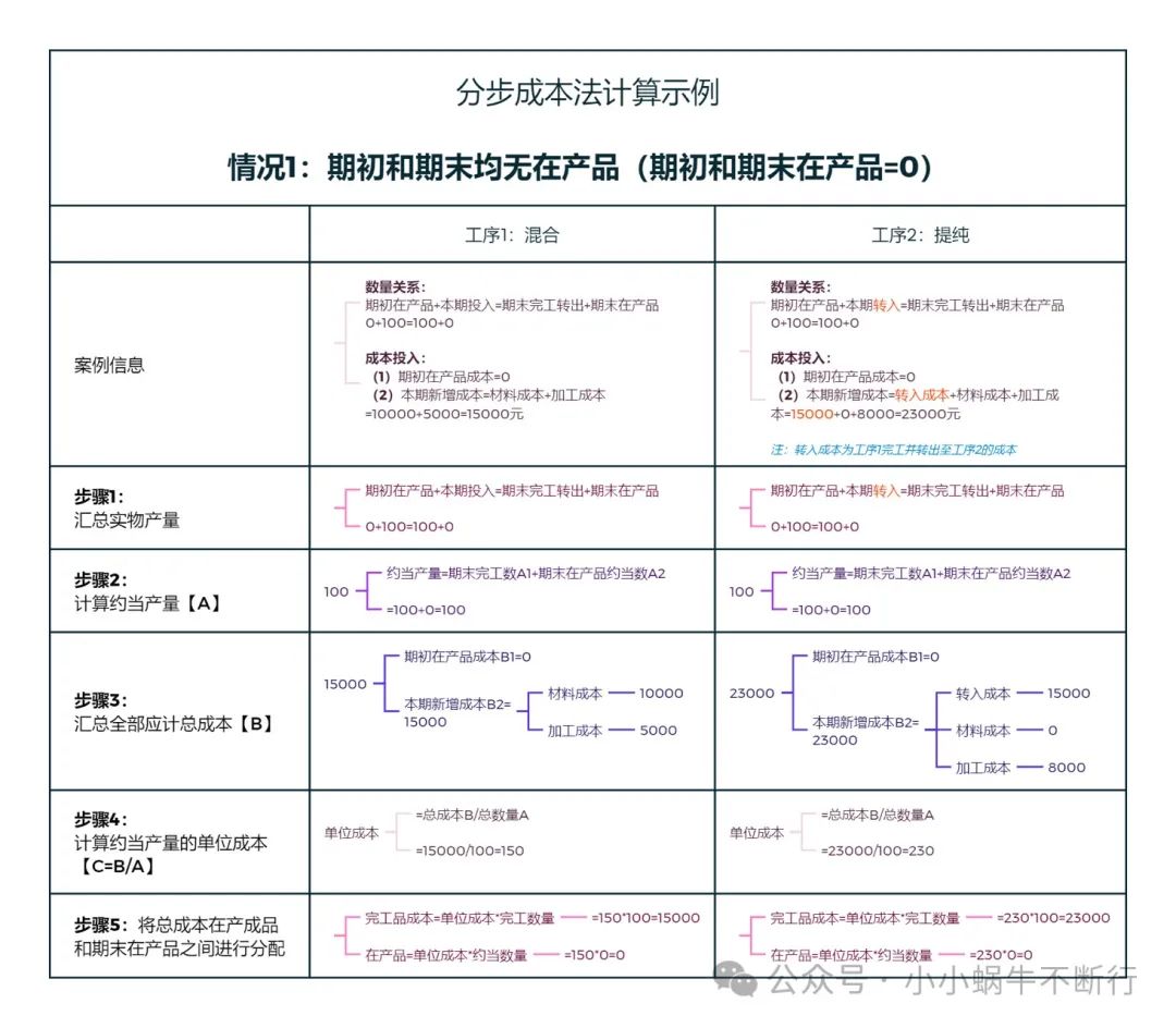 在工廠里,一件產(chǎn)品往往要經(jīng)過好幾道工序才能做好。那每一步花了多少錢,最后怎么算出總成本呢?讓我們一起來看看今天的主角——分步法。 一、 什么是分步法? ??定義 分步法,簡單說,就是把生產(chǎn)過程分成幾個連續(xù)的步驟,每個步驟分別算一筆賬,最后把每步的成本加起來,就得到了產(chǎn)品的總成本。 ??核心邏輯 產(chǎn)品一邊“跑步前進(jìn)”,一邊“不斷加賬”,每經(jīng)過一個步驟,就多一部分成本。 ??典型特征 ?產(chǎn)品是一批批、大量生產(chǎn)的。 ?每件產(chǎn)品長得一模一樣,不需要單獨(dú)核算。 ?每件產(chǎn)品的生產(chǎn)流程是相同的。 ??典型行業(yè) ?石油煉制 ?啤酒釀造 ?牛奶加工 ?鋼鐵冶煉 ?紡織印染…… 二、 分步法的優(yōu)缺點(diǎn)