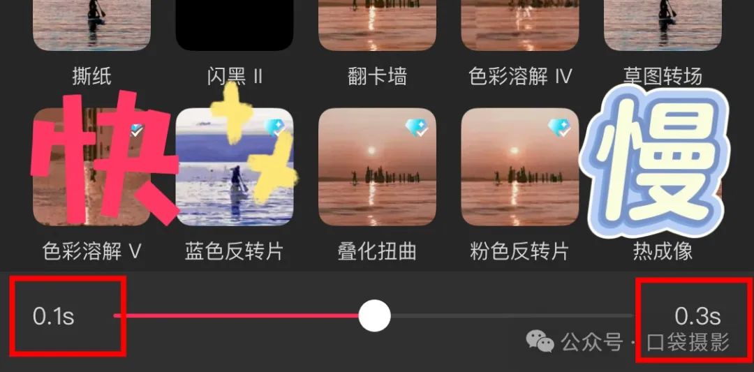3. 可滑動下方滑塊,調(diào)整轉(zhuǎn)場時長。