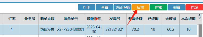點(diǎn)中一條背景變色后,再點(diǎn)擊反審按鈕 如下圖: