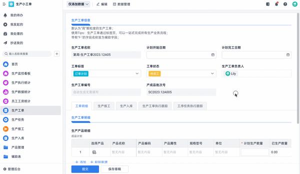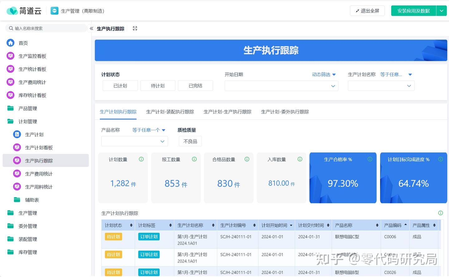 這五個關鍵因素統稱為“4M1E”。有時,人們還會加入一個“測”(Measure),形成“5M1E”。 ![]() 以上概念突出了影響制造業(yè)的五個主要因素,而通過實施MES(Manufacturing Execution System,制造執(zhí)行系統)系統,企業(yè)能夠實時監(jiān)控和管理這些關鍵因素,確保產品質量,并能夠快速適應不斷變化的環(huán)境條件。 MES系統的開發(fā)便是針對制造型企業(yè)的生產運營與生產管理而服務的。它是一種集成了計劃管理、生產管理、庫存管理、質量管理等核心管理模塊的系統。通過實施MES系統,企業(yè)能夠實現生產過程的實時監(jiān)控、生產數據的實時采集和分析,以及生產任務的動態(tài)調整,從而提高生產效率、降低生產成本、保證產品質量,并提升企業(yè)的市場競爭力。 二、MES系統的功能以下功能講解及圖示均來自于簡道云MES系統,進入鏈接,即刻體驗>>>erp管理系統-生產管理系統-倉庫管理系統-采購管理系統 1、MES系統的核心功能——必須要有MES系統的核心功能是指MES系統能夠為企業(yè)提供的最基本的管理功能,需要涵蓋最基本的生產管理要素,包括生產管理、計劃管理、技術管理、庫存管理等。這些功能構成了MES系統運行的基礎,旨在助力企業(yè)高效執(zhí)行生產計劃,合理分配資源,從而提升生產效率與質量,減少成本支出,并增強企業(yè)的市場競爭力。 (1)生產管理 生產管理涉及對制造業(yè)生產流程的全方位協調、規(guī)劃、控制、監(jiān)督和持續(xù)優(yōu)化。這一過程至關重要,因為它確保了生產活動能夠高效、有序地進行,同時滿足質量與成本目標。