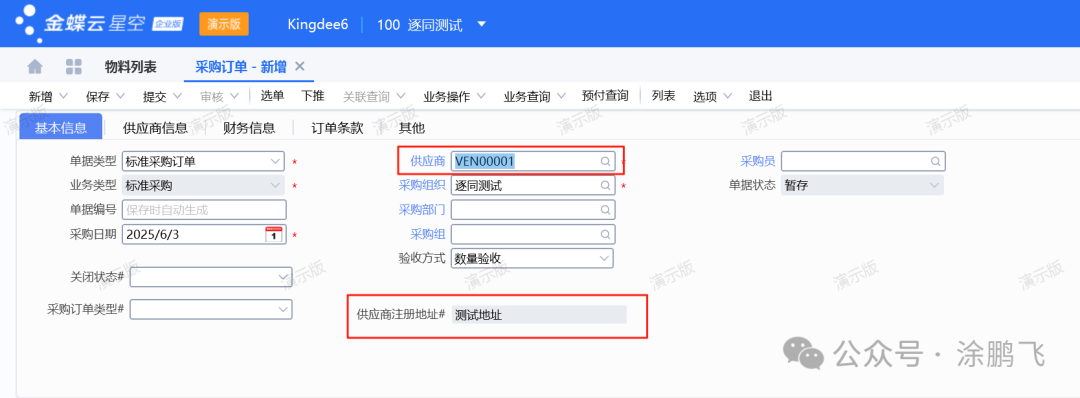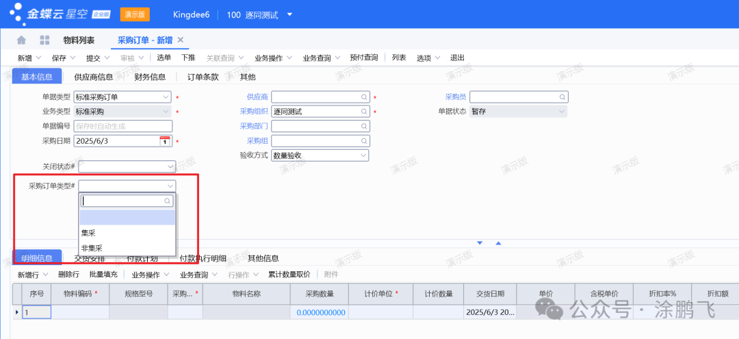 如下圖所示,在采購(gòu)訂單界面中,可以看到已經(jīng)增加了一個(gè)字段,并且按照設(shè)定的枚舉值進(jìn)行查看。