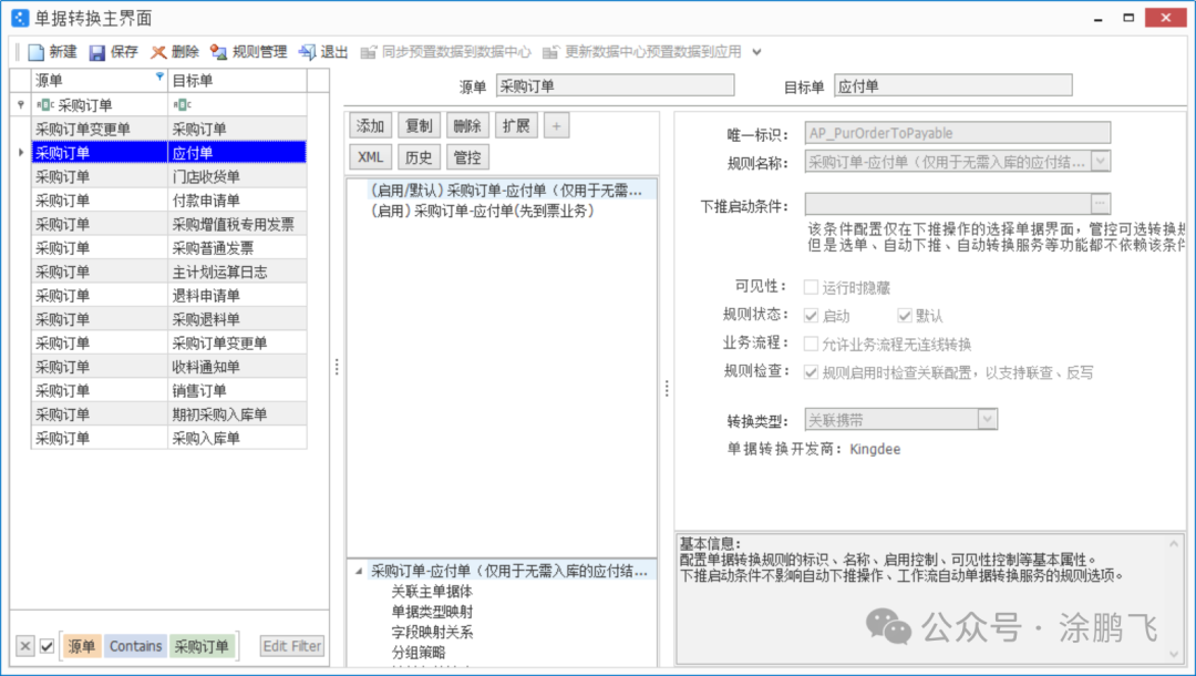 單據(jù)轉(zhuǎn)換單據(jù)轉(zhuǎn)換也是BOS中非常常用的一個(gè)功能,也是必須掌握的一個(gè)功能。單據(jù)轉(zhuǎn)換是為了解決單據(jù)之間的數(shù)據(jù)轉(zhuǎn)換的問(wèn)題,通過(guò)參數(shù)配置的方式,讓這種轉(zhuǎn)換規(guī)則不再是一種固化的規(guī)則,而是可以靈活調(diào)配的。通過(guò)規(guī)則實(shí)現(xiàn)數(shù)據(jù)映射、過(guò)濾、分組合并、計(jì)算等配置,以滿足單據(jù)轉(zhuǎn)換過(guò)程中的業(yè)務(wù)需要。