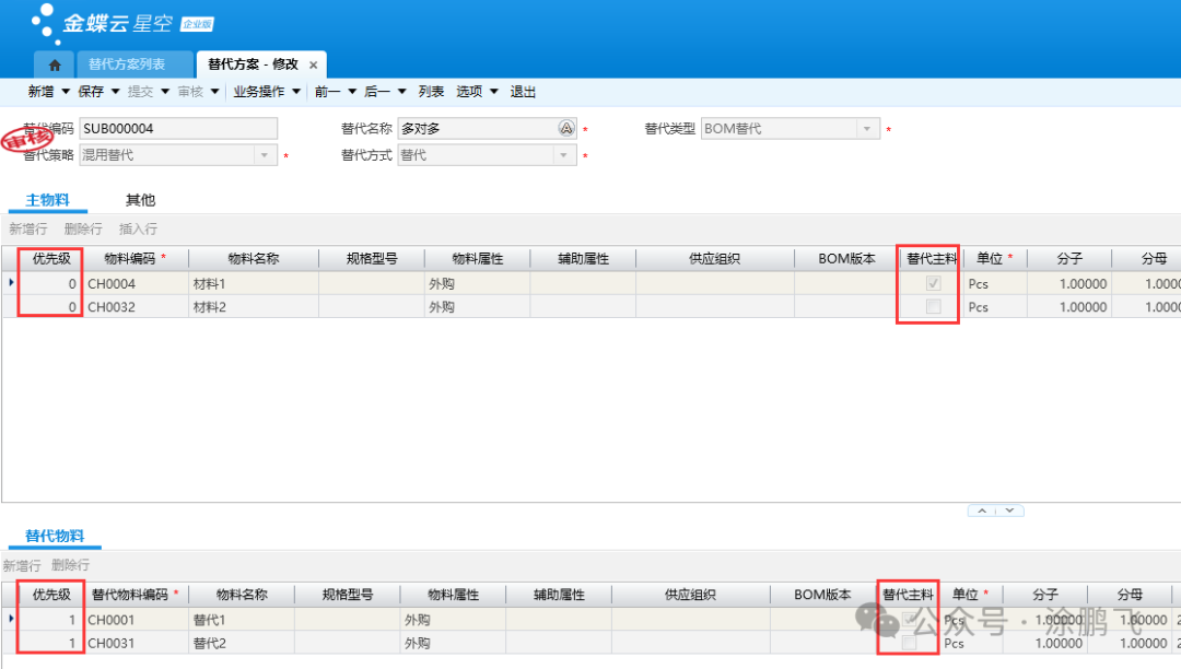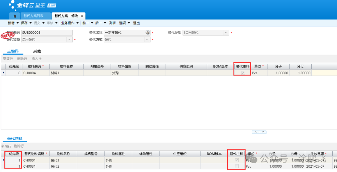 [點(diǎn)晴模切ERP]金蝶云星空:物料替代方案的設(shè)置、底層邏輯、案例分析
