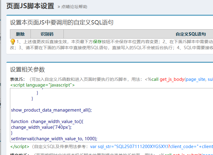 :點晴ERP-動態(tài)JS控制工單打印顯示工序資料信息![]() //顯示工序資料 show_product_data_management_all(); //修改工序的table總寬度,對齊 function change_width_value_to(){ change_width_value('740px'); } //循頊執(zhí)行修改寬度函數 setInterval(change_width_value_to, 1000); ![]() 點晴模切ERP更多信息:http://moqie.clicksun.cn,聯(lián)系電話:4001861886 該文章在 2025/7/11 12:01:21 編輯過 |