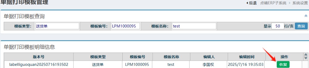 :點(diǎn)晴ERP-標(biāo)簽?zāi)0寤謴?fù)歷史記錄模板功能-操作流程