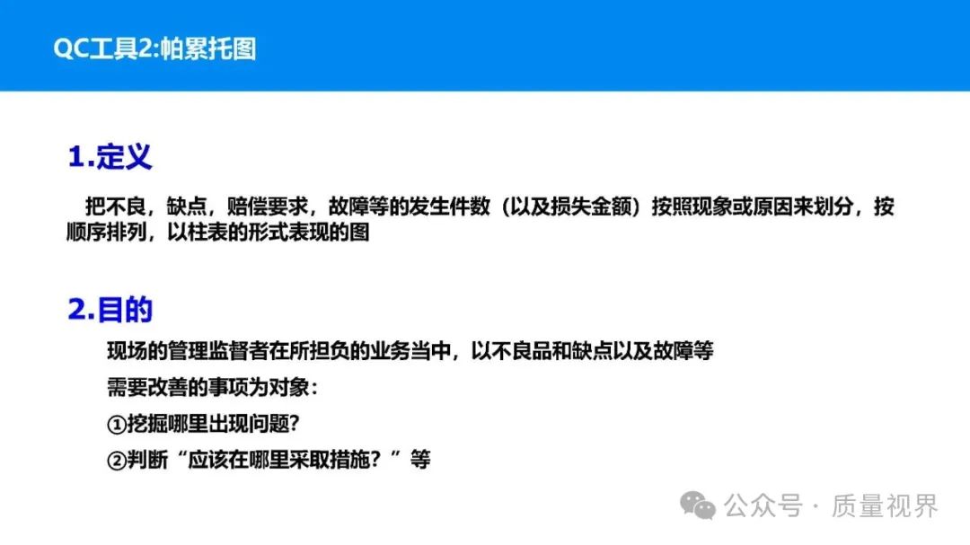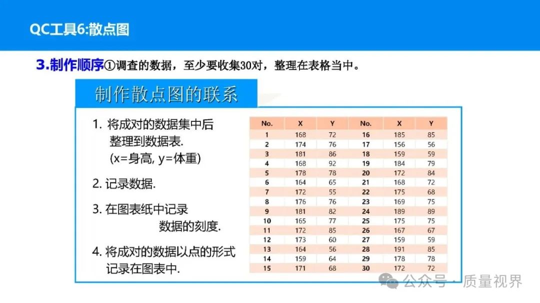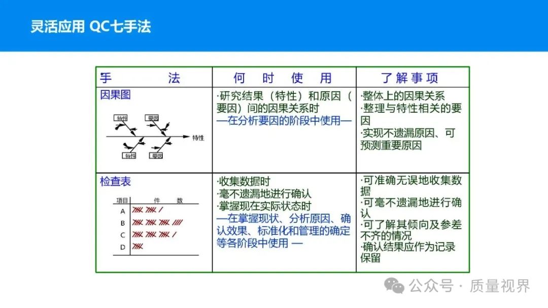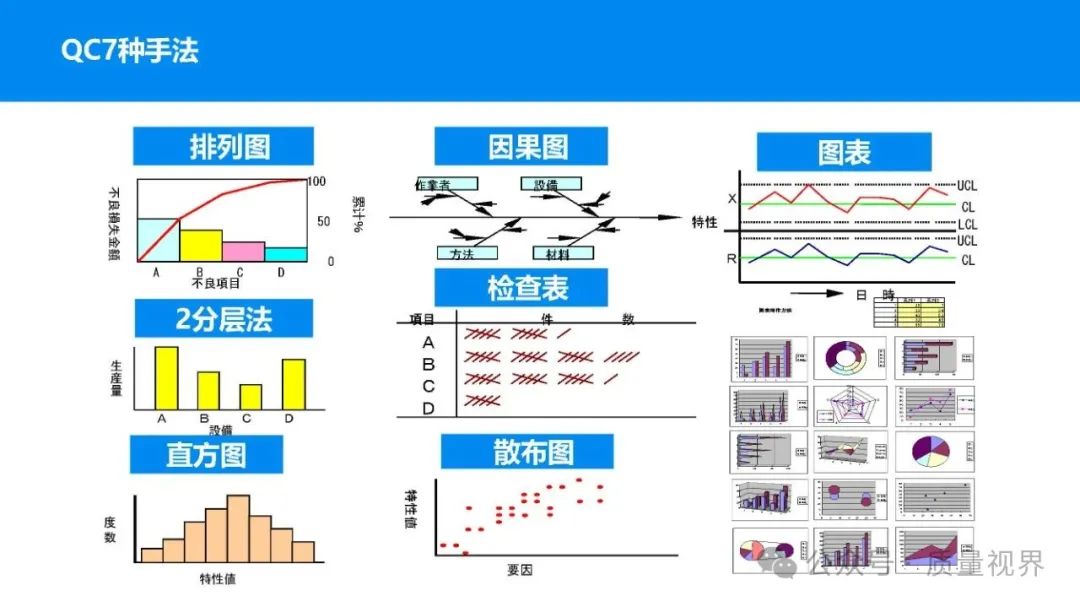 在質(zhì)量管理領(lǐng)域,七大工具是提升產(chǎn)品質(zhì)量、優(yōu)化流程的重要手段。它們操作簡便、實(shí)用性強(qiáng),能幫助我們從復(fù)雜的數(shù)據(jù)和現(xiàn)象中找到關(guān)鍵問題,為質(zhì)量改進(jìn)提供明確方向。以下將逐一介紹這七大工具。檢查表是一種為收集和整理數(shù)據(jù)而設(shè)計(jì)的表格,它能讓數(shù)據(jù)收集過程更有條理,避免遺漏關(guān)鍵信息。可以系統(tǒng)地收集特定問題的數(shù)據(jù),為后續(xù)的分析提供可靠依據(jù)。比如在生產(chǎn)車間,可用于記錄每天產(chǎn)品的不合格項(xiàng)數(shù)量及類型。(二)制作步驟明確收集數(shù)據(jù)的目的,比如是為了了解某產(chǎn)品的不合格原因分布。確定需要收集的數(shù)據(jù)項(xiàng)目,如不合格類型、發(fā)生時(shí)間、發(fā)生地點(diǎn)等。設(shè)計(jì)表格樣式,將數(shù)據(jù)項(xiàng)目合理排列。確定數(shù)據(jù)收集的周期和負(fù)責(zé)人。按照表格要求進(jìn)行數(shù)據(jù)填寫。某電子廠為了解手機(jī)屏幕的不合格情況,設(shè)計(jì)檢查表記錄每天的不合格類型,如劃痕、亮點(diǎn)、暗點(diǎn)等。一周后,通過檢查表數(shù)據(jù)能直觀看到劃痕問題出現(xiàn)的次數(shù)最多,為后續(xù)解決該問題提供了數(shù)據(jù)支持。柏拉圖又稱排列圖,它基于 “關(guān)鍵的少數(shù),次要的多數(shù)” 原則,將數(shù)據(jù)按重要程度排序,以柱狀圖和折線圖結(jié)合的形式展示,幫助識(shí)別主要問題。能快速找出影響質(zhì)量的主要因素,讓我們把精力集中在關(guān)鍵問題上,提高質(zhì)量改進(jìn)的效率。(二)制作步驟確定分析的問題和數(shù)據(jù)范圍,比如某產(chǎn)品的不合格原因及對應(yīng)數(shù)量。對數(shù)據(jù)進(jìn)行分類統(tǒng)計(jì),計(jì)算各類別的數(shù)量和占比。按數(shù)量從大到小排序。繪制柱狀圖,橫軸為類別,縱軸為數(shù)量;再繪制折線圖,縱軸為累計(jì)占比。在累計(jì)占比 80% 左右的位置畫一條橫線,橫線左側(cè)的類別即為主要問題。某服裝加工廠對襯衫的不合格品進(jìn)行統(tǒng)計(jì),發(fā)現(xiàn)線頭、尺寸偏差、面料瑕疵、紐扣松動(dòng)等問題。通過制作柏拉圖,發(fā)現(xiàn)線頭和尺寸偏差的累計(jì)占比達(dá)到 80%,于是重點(diǎn)針對這兩個(gè)問題進(jìn)行改進(jìn),有效降低了不合格率。魚骨圖又稱因果圖,因其形狀像魚骨而得名。它將影響質(zhì)量的因素按類別進(jìn)行梳理,找出問題的根本原因。能全面、系統(tǒng)地分析問題產(chǎn)生的原因,避免遺漏,幫助找到根本解決辦法,而不是只解決表面問題。(二)制作步驟明確需要分析的質(zhì)量問題,寫在魚骨的 “魚頭” 位置。確定主要原因類別,通常包括人、機(jī)、料、法、環(huán)、測等,作為魚骨的主骨。針對每個(gè)主骨,進(jìn)一步分析次要原因,作為子骨。繼續(xù)深入分析,找出更具體的原因,直到能采取措施解決為止。對分析出的原因進(jìn)行篩選,確定根本原因。某食品廠生產(chǎn)的餅干出現(xiàn)口感偏硬的問題,用魚骨圖分析。從人(操作工人烘焙時(shí)間控制不當(dāng))、機(jī)(烤箱溫度不穩(wěn)定)、料(面粉含水量過高)、法(烘焙工藝參數(shù)不合理)、環(huán)(車間濕度大)、測(溫度檢測儀器不準(zhǔn))等方面入手,最終發(fā)現(xiàn)烤箱溫度不穩(wěn)定和烘焙工藝參數(shù)不合理是根本原因。直方圖是將數(shù)據(jù)按一定區(qū)間分組,以矩形的高度表示每組數(shù)據(jù)的頻數(shù),從而展示數(shù)據(jù)的分布狀態(tài)。能直觀地反映數(shù)據(jù)的分布特征,如數(shù)據(jù)的集中程度、離散程度、是否存在異常值等,幫助判斷生產(chǎn)過程是否穩(wěn)定。(二)制作步驟收集數(shù)據(jù),確定數(shù)據(jù)的數(shù)量,一般建議不少于 50 個(gè)。找出數(shù)據(jù)中的最大值和最小值,計(jì)算極差(最大值 - 最小值)。確定組數(shù)和組距,組數(shù)通常根據(jù)數(shù)據(jù)數(shù)量確定,組距 = 極差 ÷ 組數(shù)。確定每組的區(qū)間范圍,注意區(qū)間要連續(xù)且不重疊。統(tǒng)計(jì)每組數(shù)據(jù)的頻數(shù)。繪制直方圖,橫軸為數(shù)據(jù)區(qū)間,縱軸為頻數(shù)。某機(jī)械廠對零件的直徑進(jìn)行測量,得到一批數(shù)據(jù)。通過繪制直方圖,發(fā)現(xiàn)數(shù)據(jù)呈現(xiàn)正態(tài)分布,且在標(biāo)準(zhǔn)范圍內(nèi),說明生產(chǎn)過程穩(wěn)定。若直方圖出現(xiàn)偏態(tài)或有數(shù)據(jù)超出標(biāo)準(zhǔn)范圍,則表明生產(chǎn)過程存在問題,需及時(shí)調(diào)整。控制圖是用于監(jiān)控生產(chǎn)過程是否處于穩(wěn)定狀態(tài)的工具,通過設(shè)置控制界限,判斷過程是否出現(xiàn)異常波動(dòng)。能及時(shí)發(fā)現(xiàn)生產(chǎn)過程中的異常情況,以便采取措施進(jìn)行調(diào)整,預(yù)防不合格品的產(chǎn)生,保證生產(chǎn)過程的穩(wěn)定性。(二)制作步驟確定需要監(jiān)控的質(zhì)量特性,如產(chǎn)品的尺寸、重量等。收集數(shù)據(jù),按時(shí)間順序或批次分組。計(jì)算每組數(shù)據(jù)的平均值(或中位數(shù))和極差(或標(biāo)準(zhǔn)差)。確定控制界限,通常包括中心線(CL)、上控制限(UCL)和下控制限(LCL),一般以 ±3 倍標(biāo)準(zhǔn)差作為控